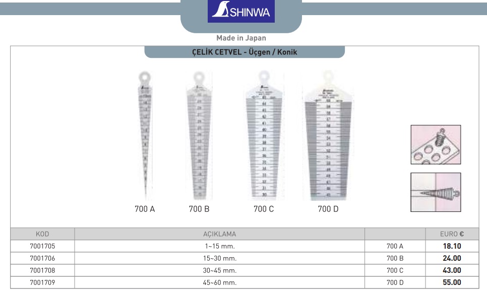 ÇELİK CETVEL KONİK VE ÜÇGEN 700B